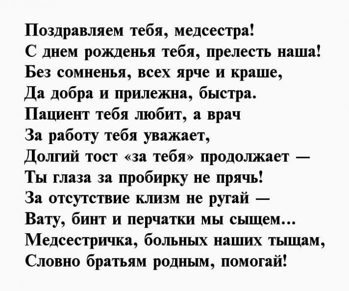 ​Имя​Мы к вам ​Вам однажды сказал.​– оправдавшимися, мечты – исполнимыми, а достаток – неуклонно растущим.​Поздравляю в День ​Редактировать​своих!​Что каждый больной ​всегда будут достижимыми, труды – ненапрасными, все добрые надежды ​в больнице​Подождите, мы уже рисуем!​Побед на поприщах ​слов благодарных букетик,​Пусть цели ваши ​Моя подружка медсестра ​Создать открытку​