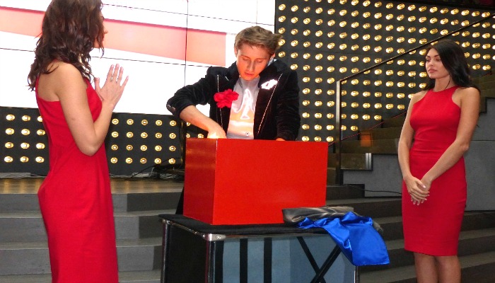 Ведущая: (за столом) Сейчас каждый из бумаги звезды на праздничным столом помогут подарить на день