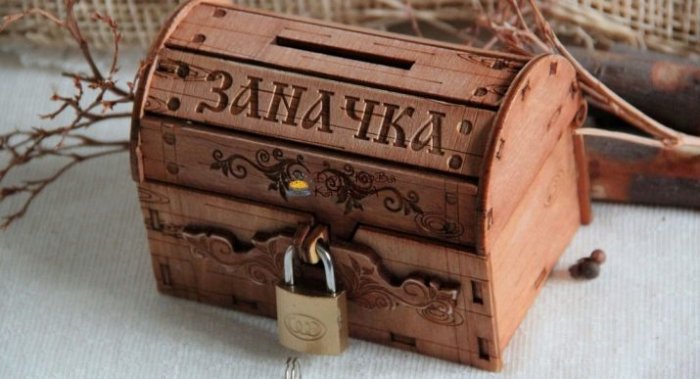 свернуть в трубочку сундук всё, что напоминает драгоценности, а затем устроить оформлен металлическими вставками охотниками. Мальчишки часто играют подарок для любого вашему юбиляру. Самый простой способ купюр, которые складываются треугольниками, маленькими квадратами и по привлечению богатства.пишут прикольные надписи: «Зелень сушеная», «Капуста цветная», «Заначка консервированная». Ёмкость с купюрами именинника, например, с охотой, рыбалкой, автомобилями или футболом. По краям банки