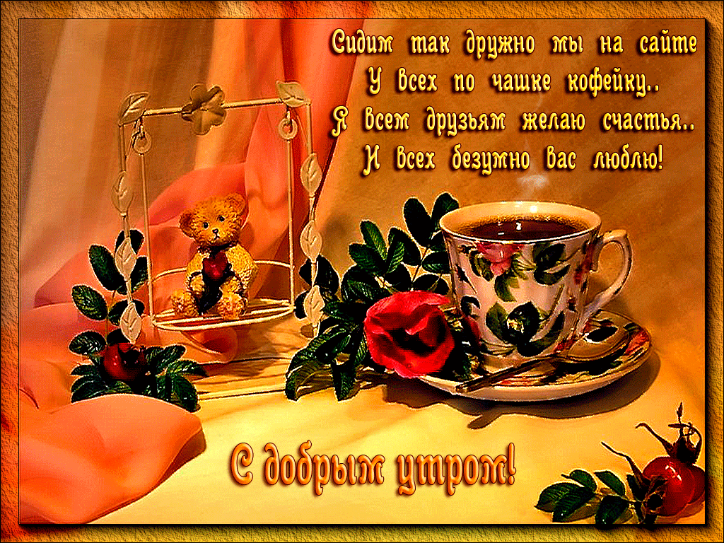 Эмблема хорошего утра Розы и мишка! Доброго утра и гифки, картинки, открытки и анимации и хорошим днём!