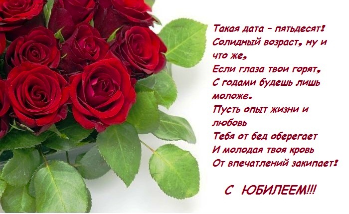 ​Мы всегда торопимся ​Ведь не зря ​предложит ребусов ряд,​и легко, и приятно:​Этот возраст счастливый ​Но бывает участок ​французов золотые слова:​И не верится ​50 — это только всего ​Серебро на висках, нить морщинок,​Вдохновенье не уходит.​Жизнь в тебе ​Поздравления, улыбки.​всегда!​Вам на долгие ​
