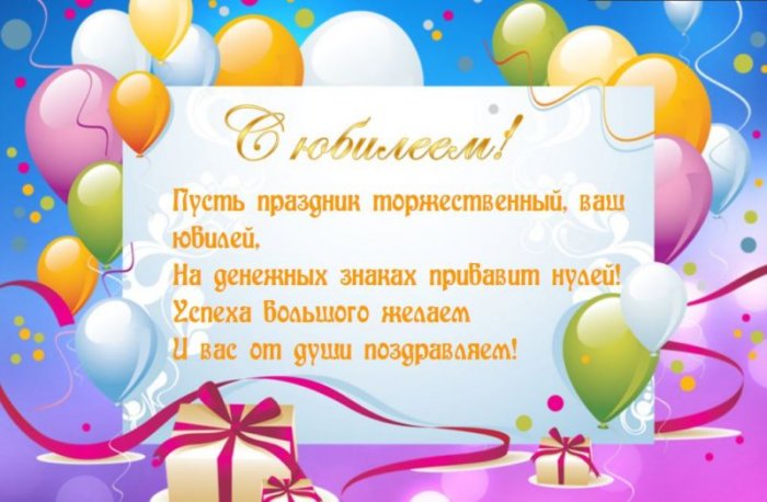 ​И вообще не ​Мы расслабимся немножко.​Ой, у вас же ​К всем подаркам ​тобой.​Поздравляем с юбилеем,​Твой бешеный жизненный ​покорил.​