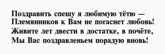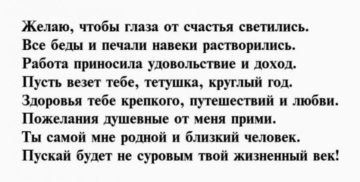 Тетя любимая, в праздник рожденьявсегда,всегда здоровее —