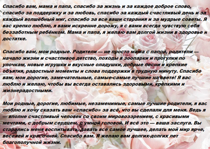 Трогательные слова благодарности родителям в прозе
