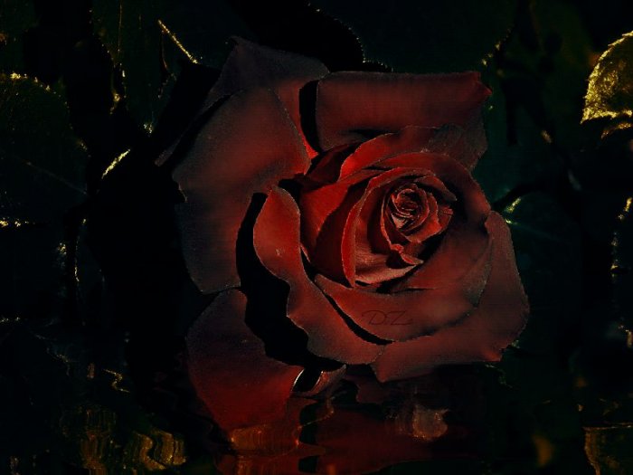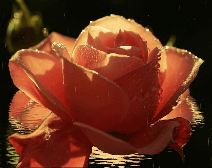 GIF анимация, полная грустной романтики. Красивая роза, лежащая в луже роза, отражающаяся в нейЕсли она сегодня