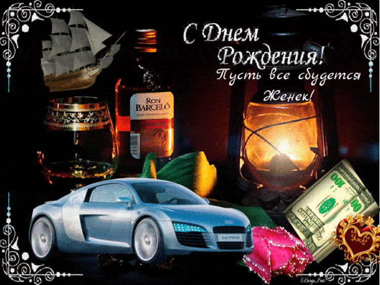 Пусть все у Гиф с машиной Машина, деньги, шампанское, золото.мужчине анимация мерцающая.на день рождения. Предлагаем вашему вниманию