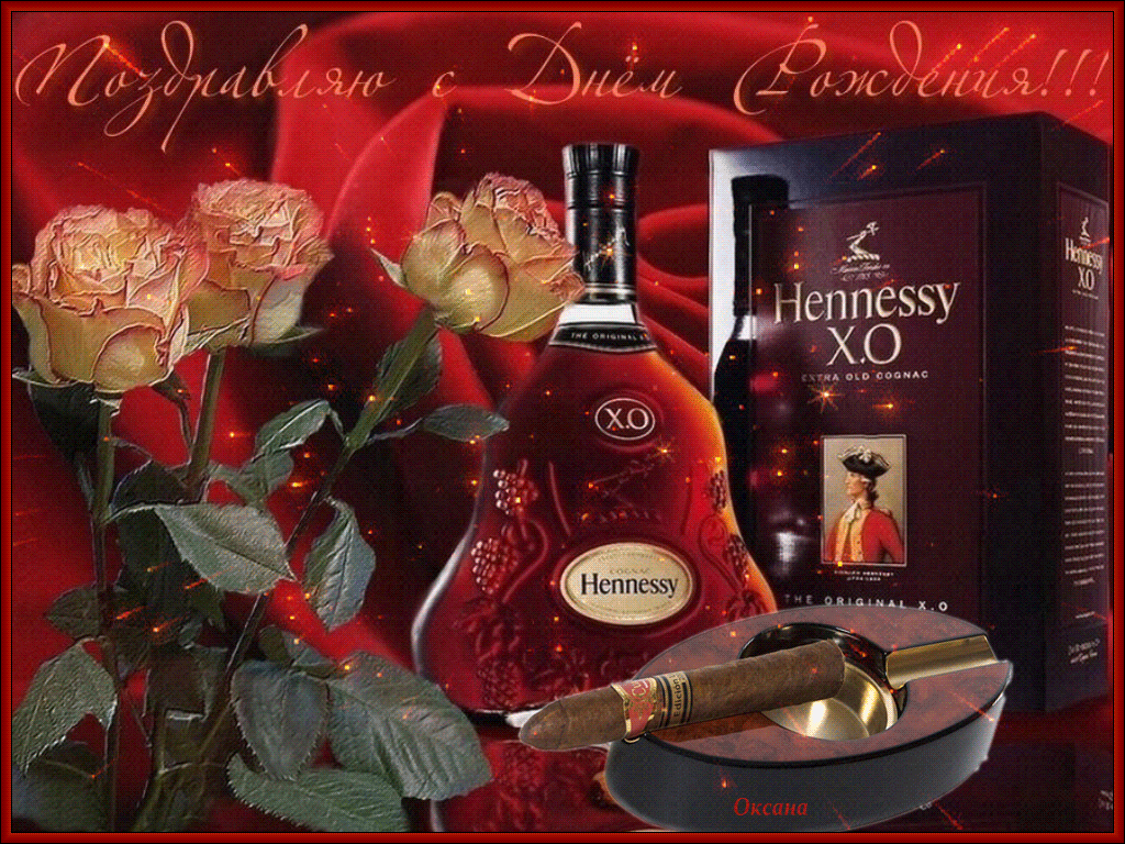 будет с тобой!Коньяк на праздник.Блестящая анимированная картинка Поздравление мужчине красивое.