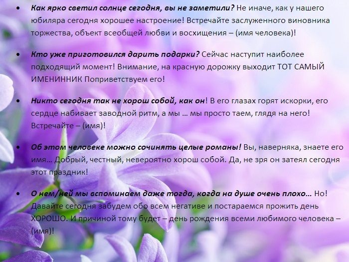 Приветствие на празднике дне рождения, юбилее от тамады: слова
