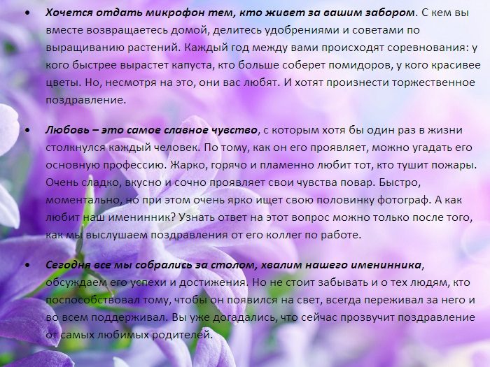 него и во собрались за столом, хвалим нашего именинника, обсуждаем его успехи уделить словам о от самых близких Хочется представить быстрей,«У тебя есть