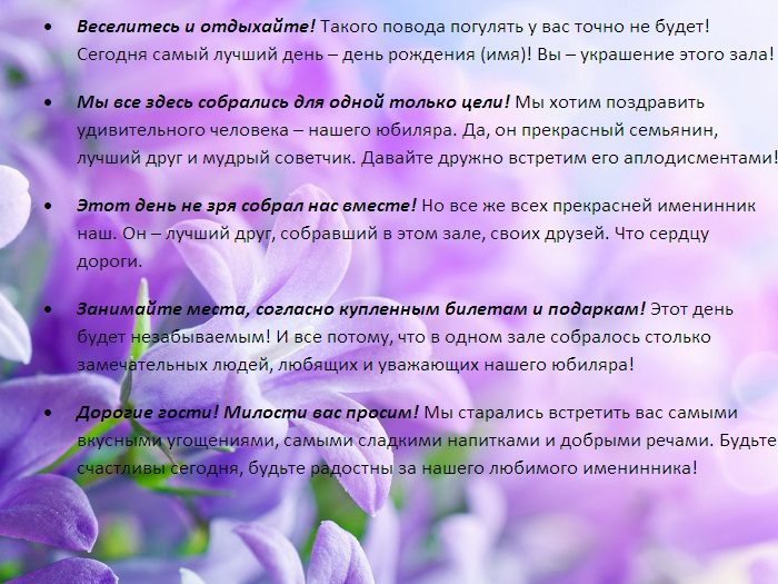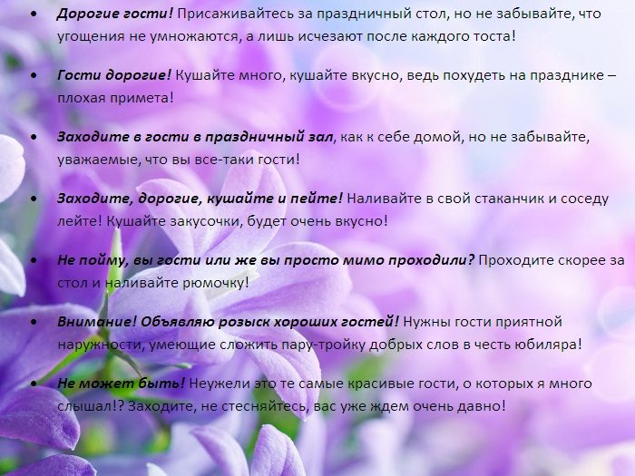 юбиляра гостям, приветствие на празднике: примерывоздействия злых сил, поэтому его нужно