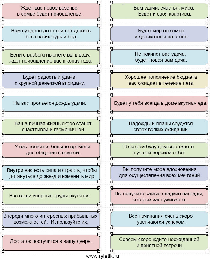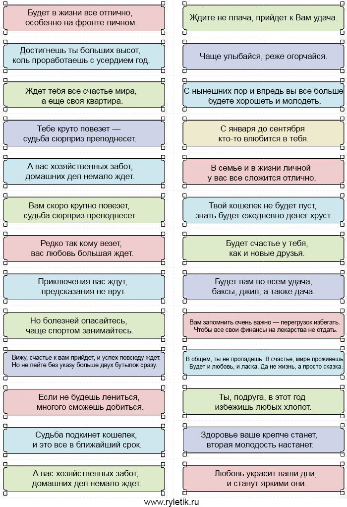 Предсказания в алфавитном порядке!