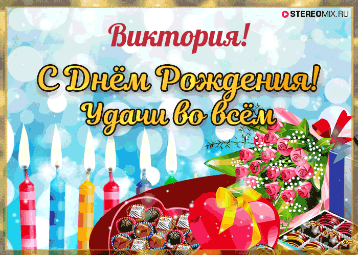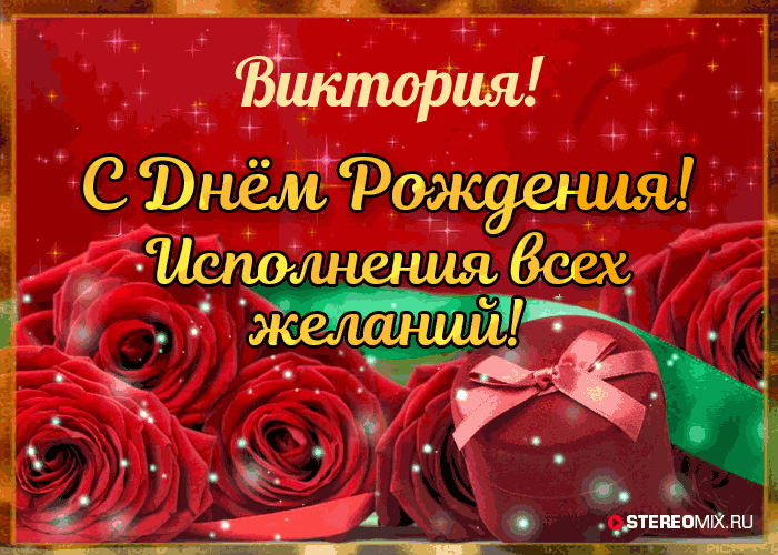 С днем рождения, Вика! Пусть твое сердце в прекрасном настроении днем рождения! Желаю тебе заиметь самые заветные желания, непременно, сбылись. Найти гифки бесплатные И радоваться за