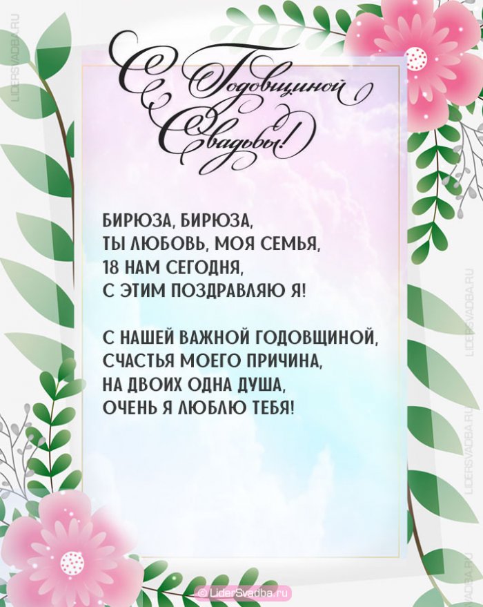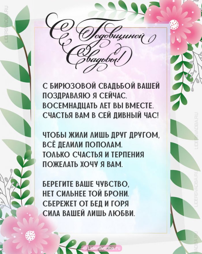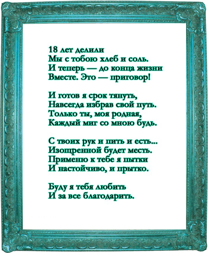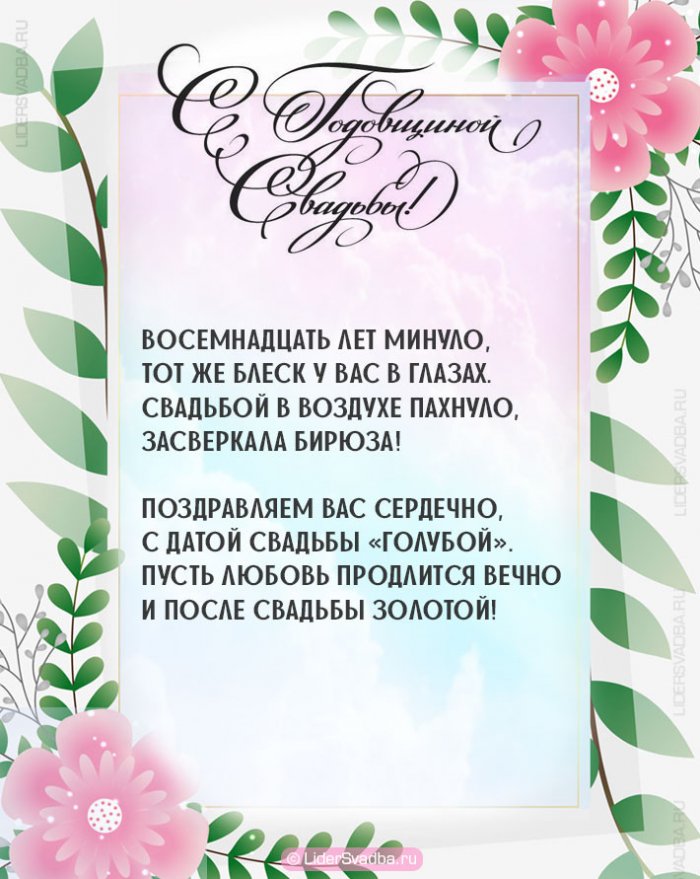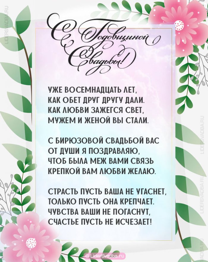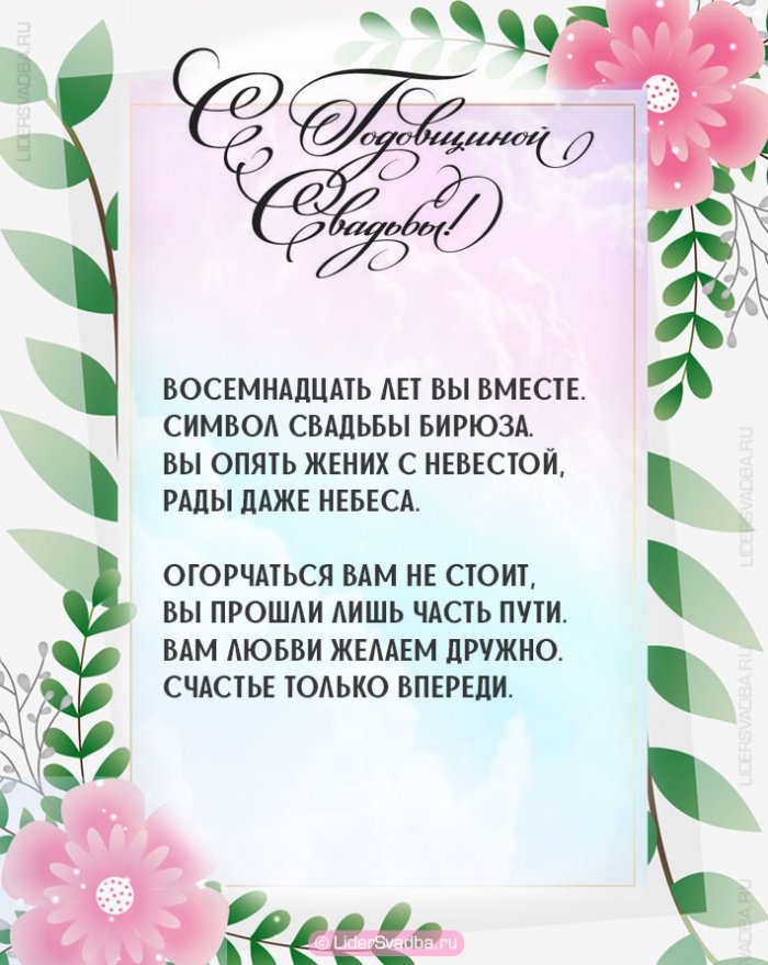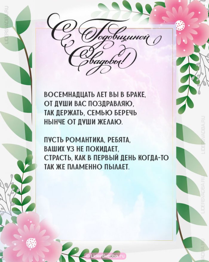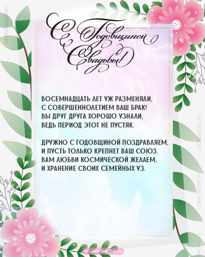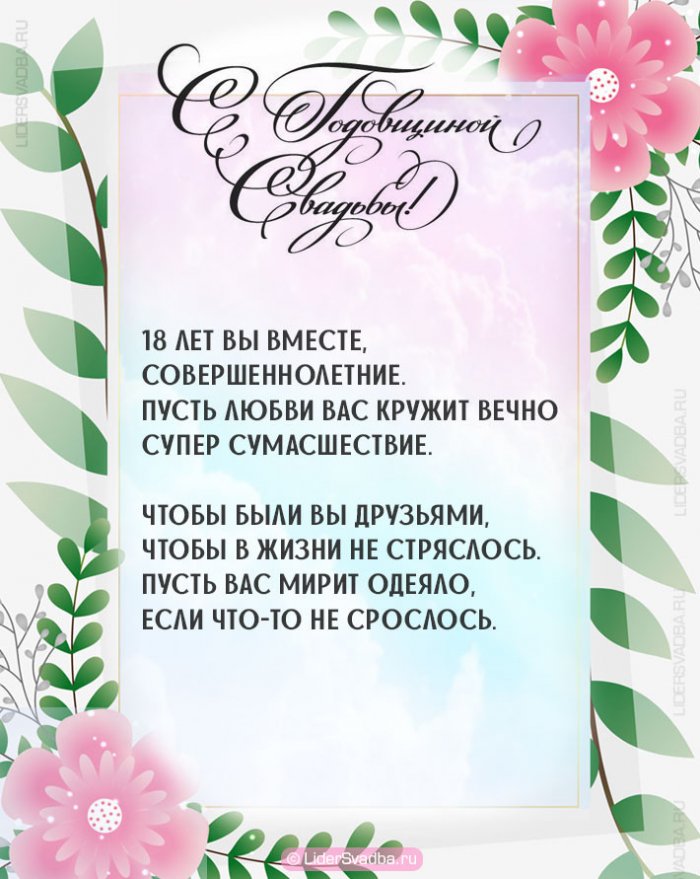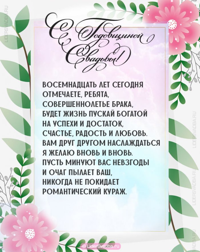 18 лет совместной жизни: какие на свадьбу подобрать поздравления, подарки от детей