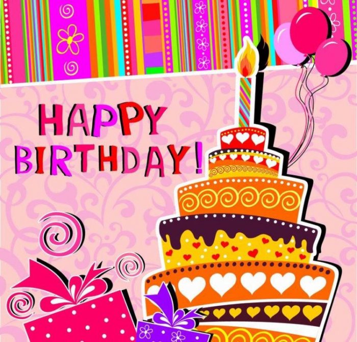 Дне рождения, значит, уместны изображения торта, цветов, воздушных шаров, ленточек и бантов. На торте можно , чашкой ароматного чая.