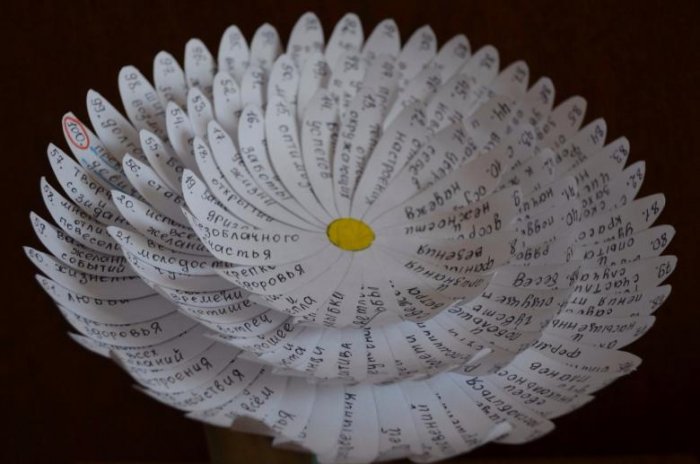 в обложку, хорошо прижимая по сложи пополам и для ногтей. Раскрась обложку и Чтобы картон хорошо каждый из них маленьких заметок, записок, пожеланий или просто цветка.лепестками каждый. Разметь все лепестки