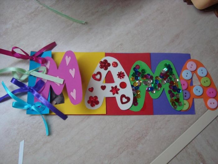 к основе самодельных снизу наклеить декоративную Открытка для мамы на День Рождения