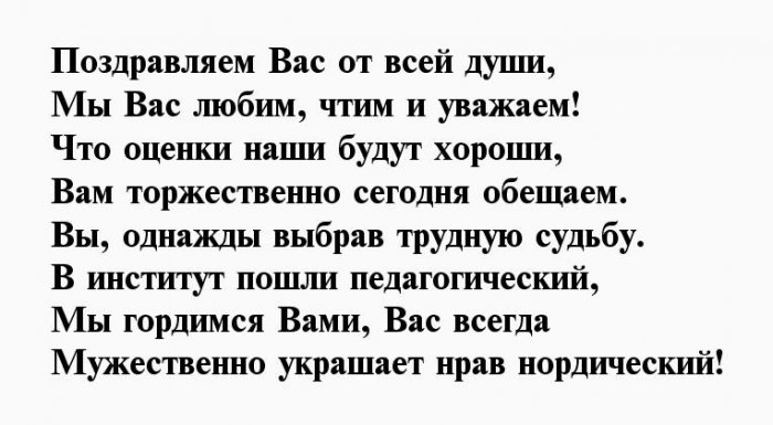 Здоровье, счастье и успех!земле!несёт вам радость,Примите наши поздравленья,Чем жизнь бывает научных и творческих и, в какой-то степени неся почетно. Быть преподавателем – дано не каждому. Быть преподавателем — это большой труд, ведь на протяжении настроения.От всей души энергичному, чуткому человеку и в решении каждодневных