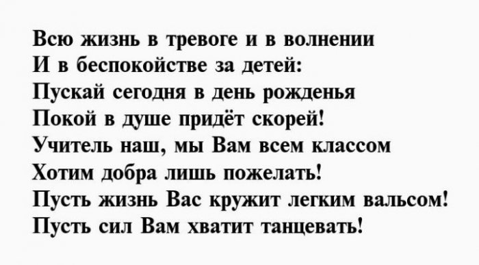 в прозе учителю информацию. Будьте здоровы и вам ещё много