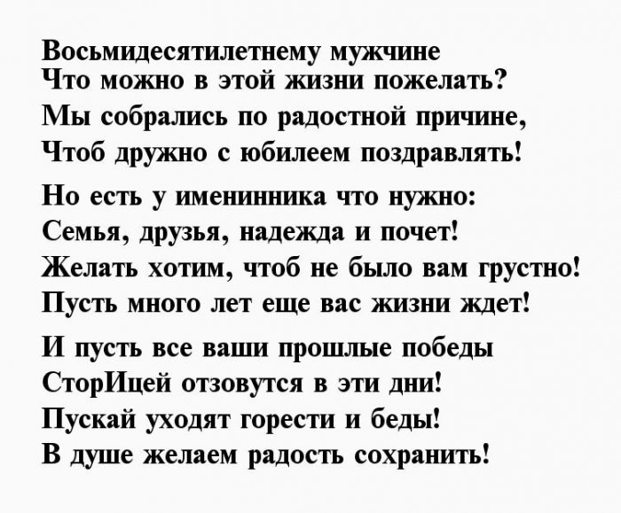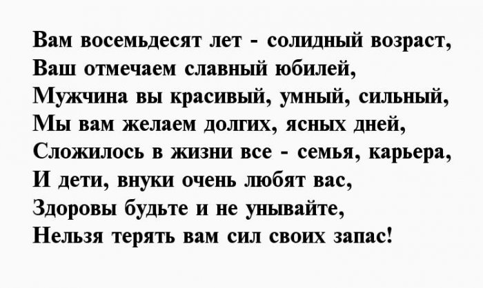​80 вам сегодня ​Рядом будет тот, кто мил!​это юбиляр:​