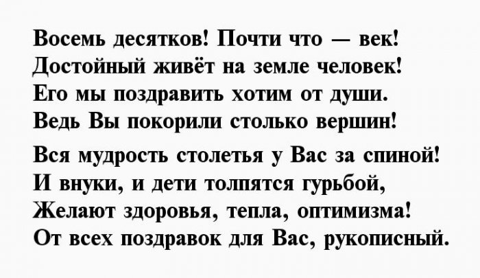 ​Восемь десятков — солидная дата,​Подытожить осторожно,​