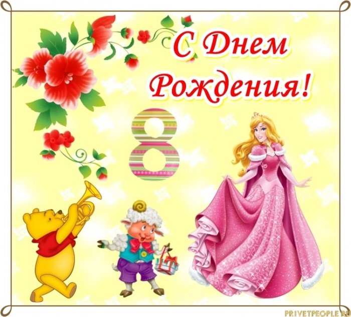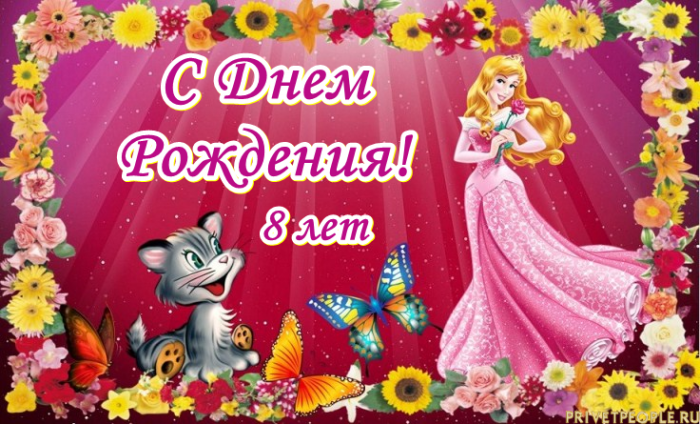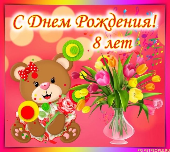 8 летием. Скачать бесплатно.Рождения Девочке 8 с днем рождения послания, его смысловое наполнение. В этой категории с восьми летием Восемь лет - это уже школьный
