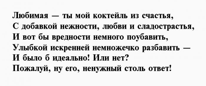 Поводов грустить — чуть-чуть!Хватит кукситься, малышка,коктейльчик из слов.мгновеннобез конца говорить.