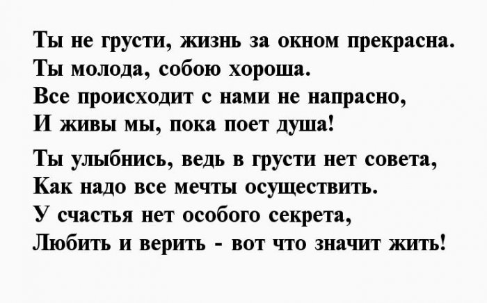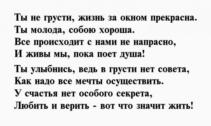 Нравишься всегда мужчинам,Ты умна, как академик,Не грусти, моя красотка,