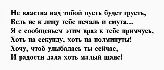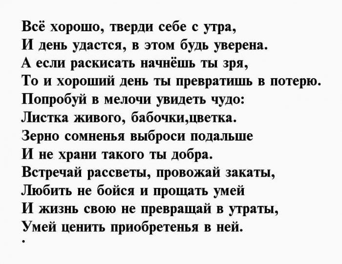 стишками-депрессняшками.Ты сполна одарена!Оставайся безмятежной,