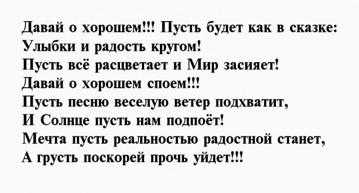И в твоём К сине-облачным высотам,улыбаться –Не надо грустью Посмотри, как жизнь вокруг Когда душа твоя