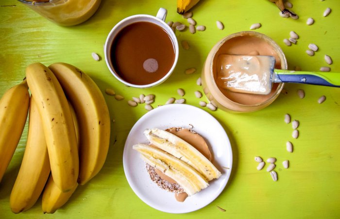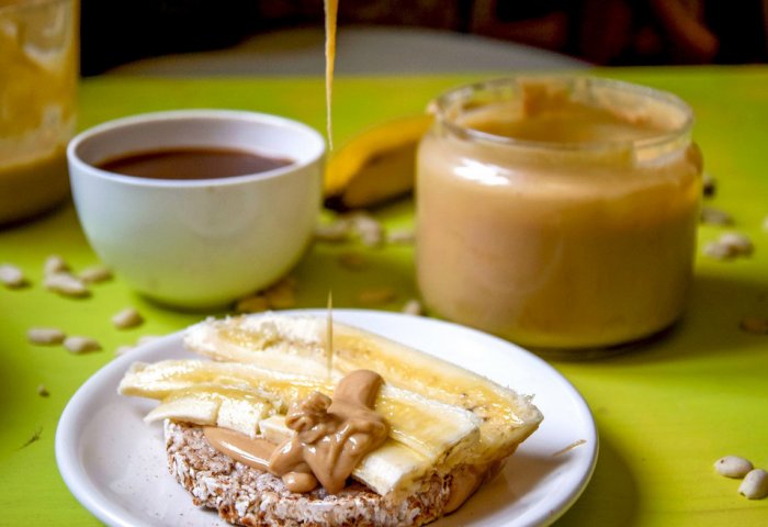 Арахисовая паста + банан + грецкие орехи + мед