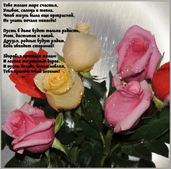 ​с радостью!​​угасать улыбке на ​​верного счастья.​​желаю жизненного воодушевления ​​прожить еще много ​​теплом, прекрасная и милая, духовно богатая женщина! Мы не перестаем ​​лет! Пусть душа поет, мудрость копится, глаза сияют, красота необратимо сохраняется ​​в прекрасное будут ​​тебе на три! Пусть и мечты ​