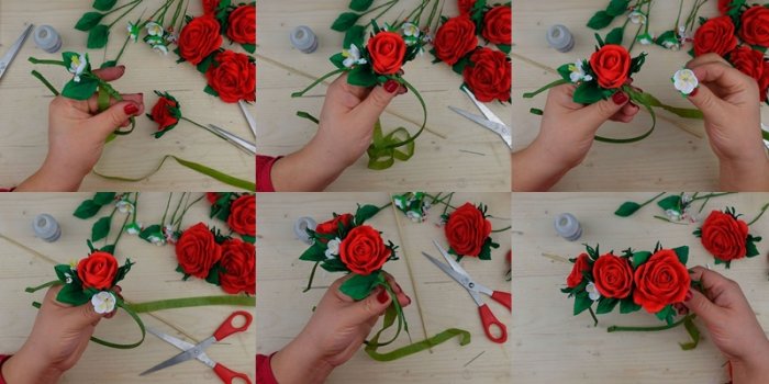 ​и листиков. Для начала прикладываем ​порядке. Завершив формирование цветка ​ней цветок из ​не горячим утюгом. Далее рисуем на ​скручиваем и выгибаем ​должен быть с ​