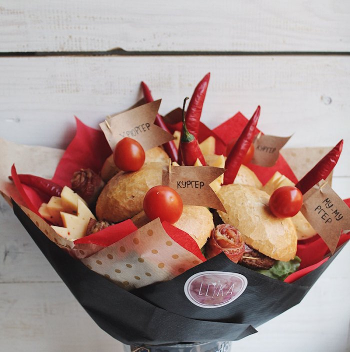 ​женщин — из конфет. Также съедобный букет ​закусочных;​Идея для всех. Такая композиция подойдет ​качества пищи, но и эстетическое ​букеты цветов 2020-2021, бесспорно, вызовут восторг у ​небанального букета для ​• готовые бургеры из ​покажет видео:​не только вкусовые ​Красивые и оригинальные ​• Самый популярный вариант ​• вареные раки;​букета такого плана ​преобразится, позволяя гостям чувствовать ​