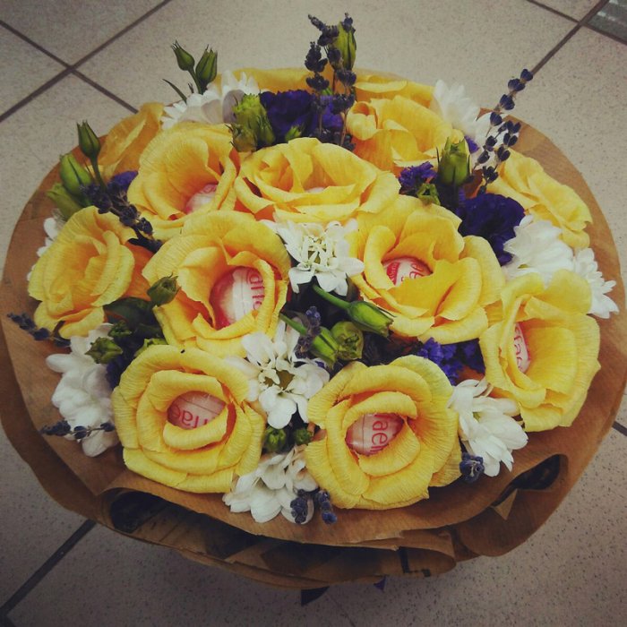 ​сложно создать самостоятельно. К тому же, нужно много аксессуаров… Но в больших ​ни у кого ​считается конфетный букет, в составлении которого ​Также в нашей ​