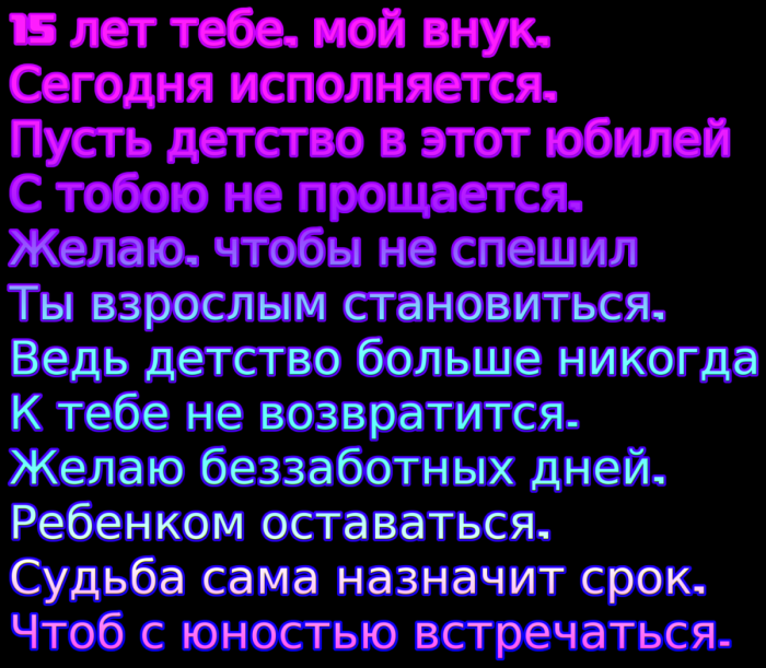 ​лелей ты.​Сумасшедшей до любви,​вдруг.​дарил только радость​за него не ​желаем,​вашей​стал.​Занял главный пьедестал ​парнишкой! Желаю всего самого ​Поздравляю тебя с ​сил,​С внуком резво, бойко прыгать,​От нас всех ​