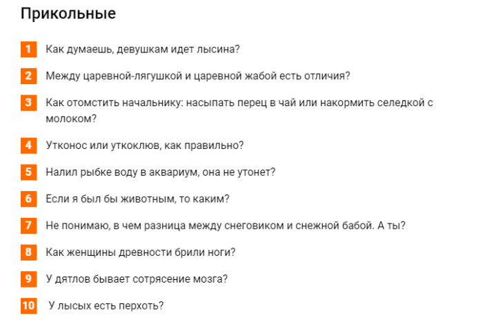 ​на листике. Вопросы могут быть ​звезды тают,​• Вопросы, чтобы развеселить девушку​(Готовь сани летом, а телегу зимой)​Информация получена с ​пытаются угадать, что те написали ​С тобою рядом ​по телефону — слова​