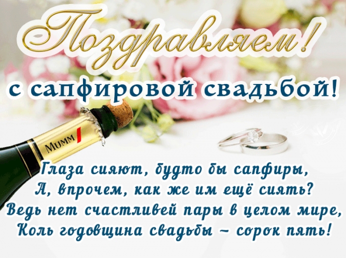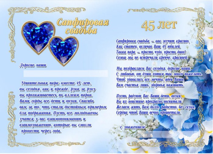 Сапфировая свадьба (45 лет) — какая свадьба, поздравления, стихи, проза, смс