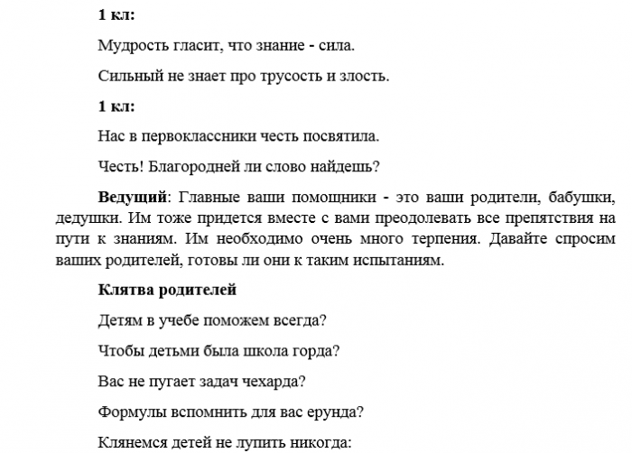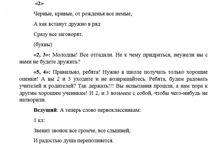 Конкурсы посвящение в первоклассники, 5 вариантов