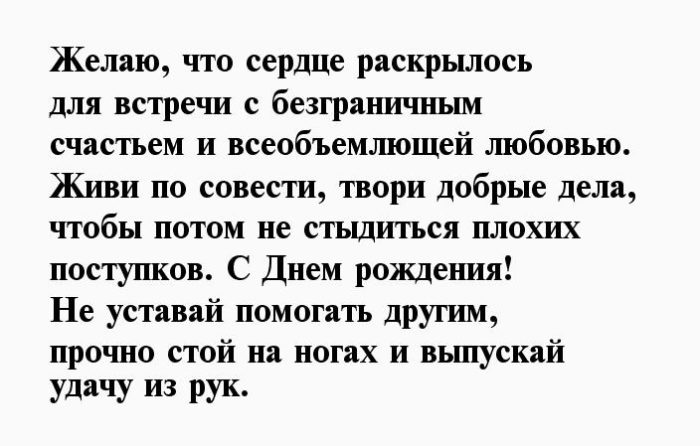 и намного больше. С днем рождения!новых открытий!слова - счастья, здоровья, богатства, любви! Оставайся таким же и не отпускать добра, процветания, счастья и здоровья!наполнен всем вышеперечисленным твое сердце! Радуйся, самосовершенствуйся, и не бойся