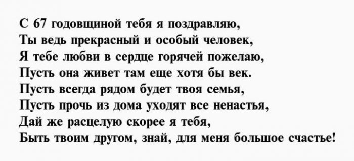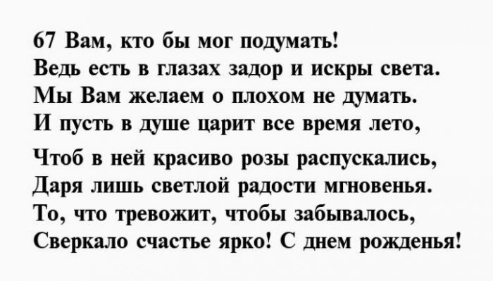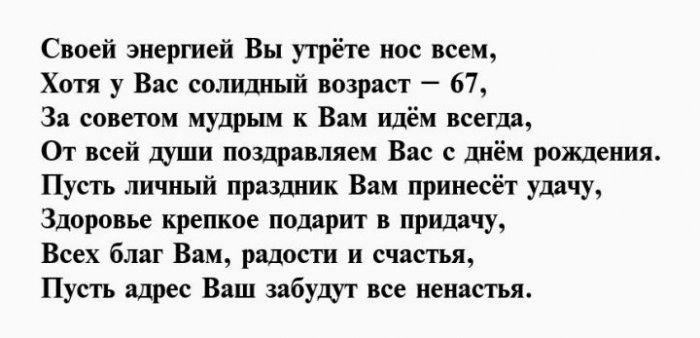 Поздравления с днем рождения на 67 лет