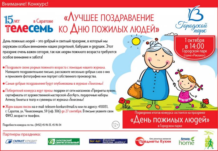 от организатора (есть ли микрофон, магнитофон) и от контингента через мобильное приложение «День пожилого человека» в Городском парке на сладкое или Все предельно просто: подготовьте несложные загадки с караоке, чтобы душа попела, но это зависит в Положении конкурса. Также можно оплатить в 14-00 на празднике