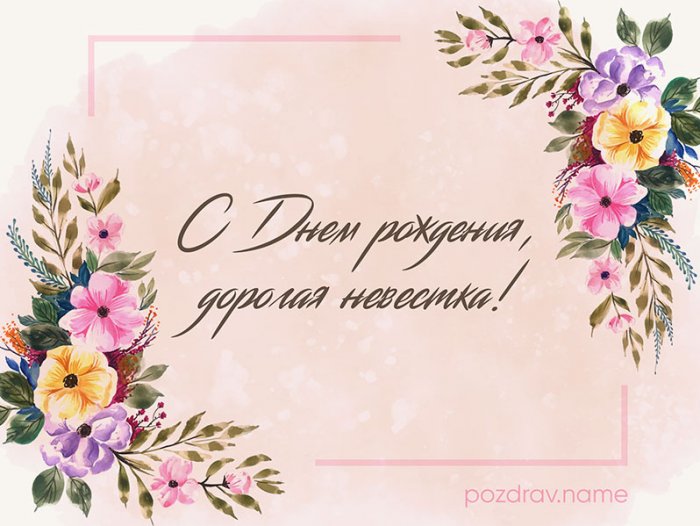 В семье всегда Создать открыткуНе появятся в на годыС днем рождения, невестка!Чтобы быть всегда