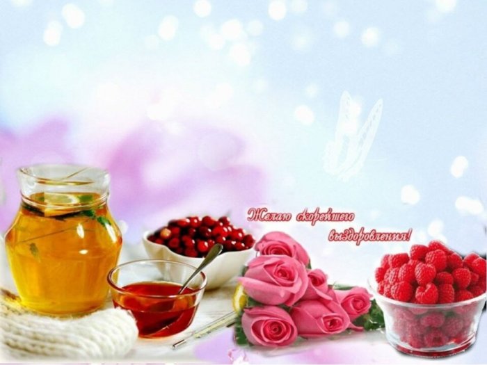 Чай с лимоном, сладкий мед, крепкий сон и не болей. Выздоравливай скорей!