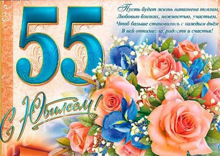 Красивые открытки, картинки с Юбилеем на 55 лет женщинам и мужчинам. Часть 2-ая.