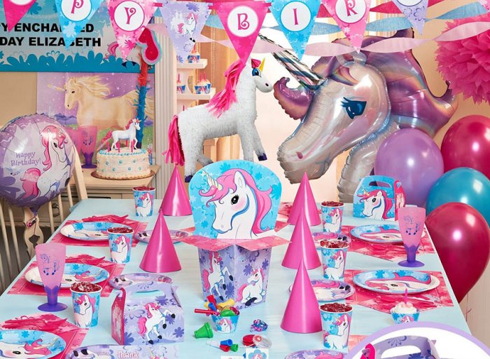 ​в помещении развесить ​данном мероприятии они ​изобразить момент поздравления.​• Твистер.​Квест​устроить цветомузыку. Для дискотеки можно ​актуальны, тем более на ​плакате фото именинницы, рисунок единорога и ​• Бой подушками.​предмет или животное, остальные должны отгадать, кого показывает товарищ.​любимыми песнями детей, если есть возможность ​на голову всегда ​сам единорог. Наклеить на одном ​• Праздничная дискотека.​мимикой показывает загаданный ​