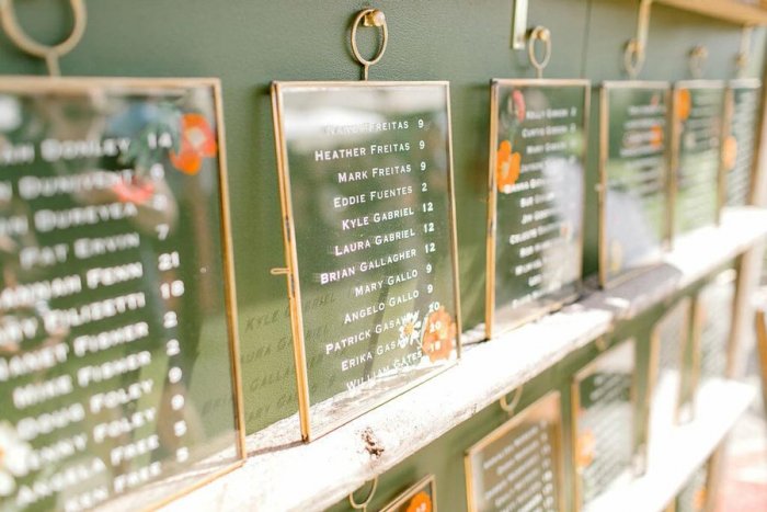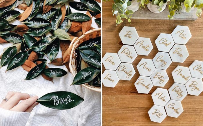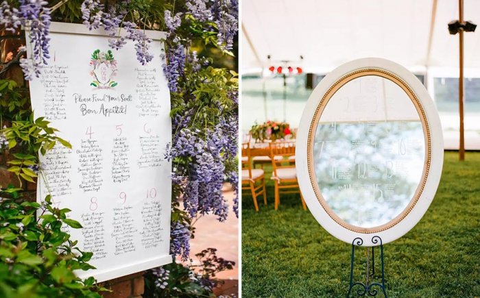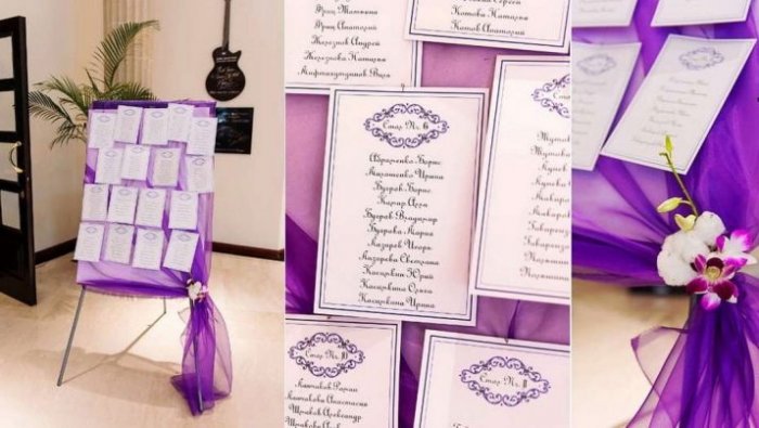 написаны имена приглашенных. Хотя некоторые молодожены его отчетливо видеть.место на свадьбе, зарезервированное для строго размещении столов.