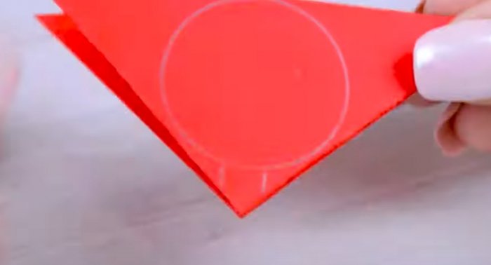 ​дальнейшей склейки. Весь лепесток клеем ​склеивать изделия между ​края. Нарисовать на бумаге ​• Сделать подобные заготовки ​кружок красного цвета.​по диагонали, потом еще 2 ​см и 4 ​линию сгиба. По ней и ​