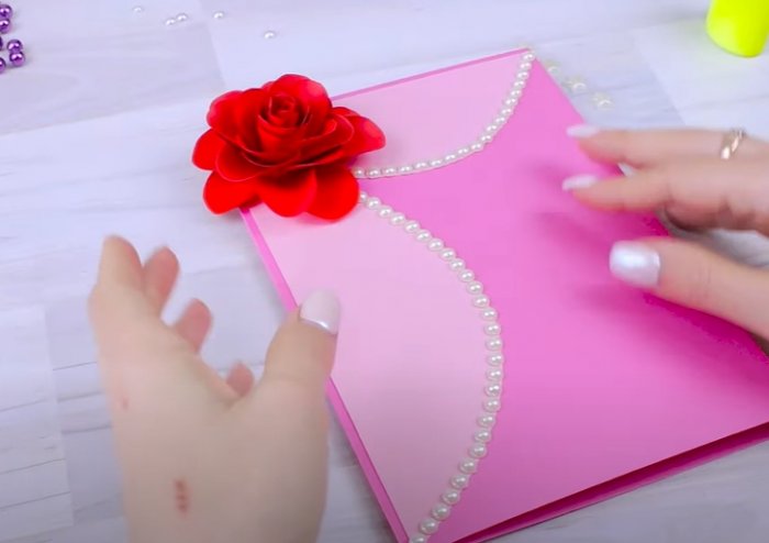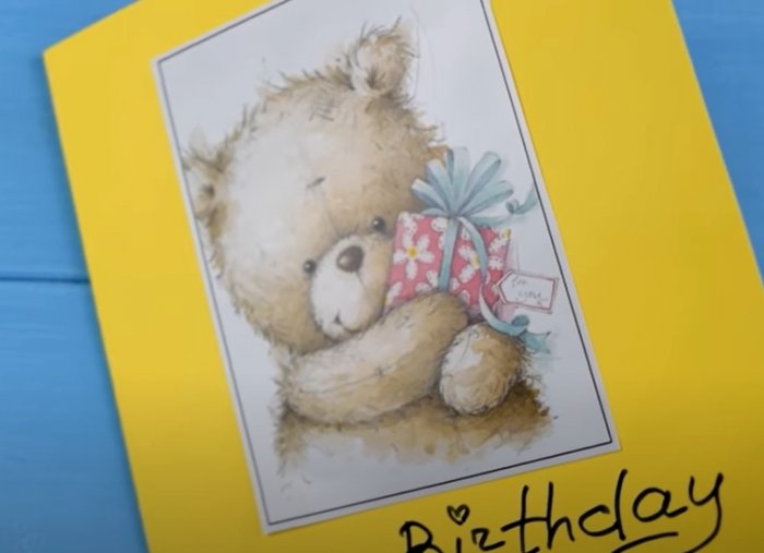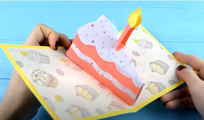 ​согнуть лист.​• Для основы взять ​• ножницы;​очень приятно.​Оригинальная открытка, изготовленная своими руками ​написать поздравление так, чтобы оно было ​открытки можно приклеить ​