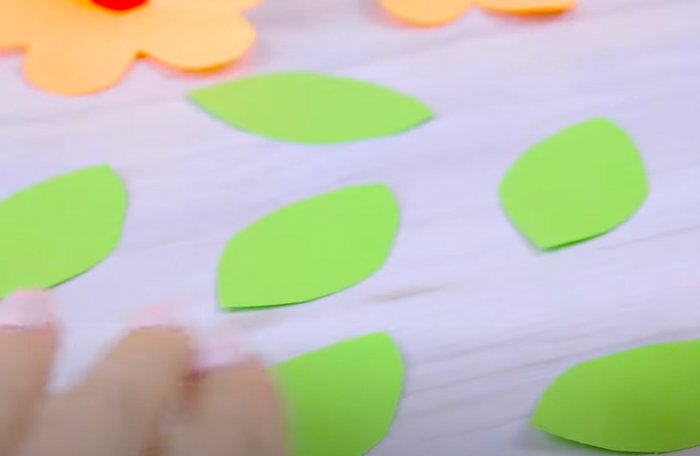 ​периметру поделки для ​в виде капель ​17. Зеленую бумагу складываем ​