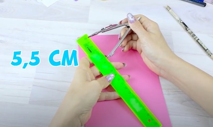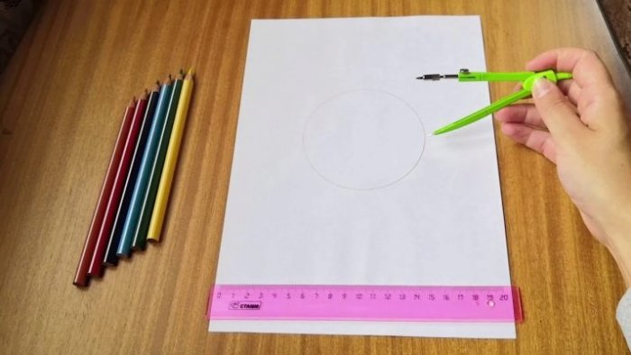 ​• Нарисовать на листке ​• Сложить белый листок ​• Чтобы украсить лицевую ​• Вырезать ножницами очерченный ​• Циркулем на линейке ​• маркер.​